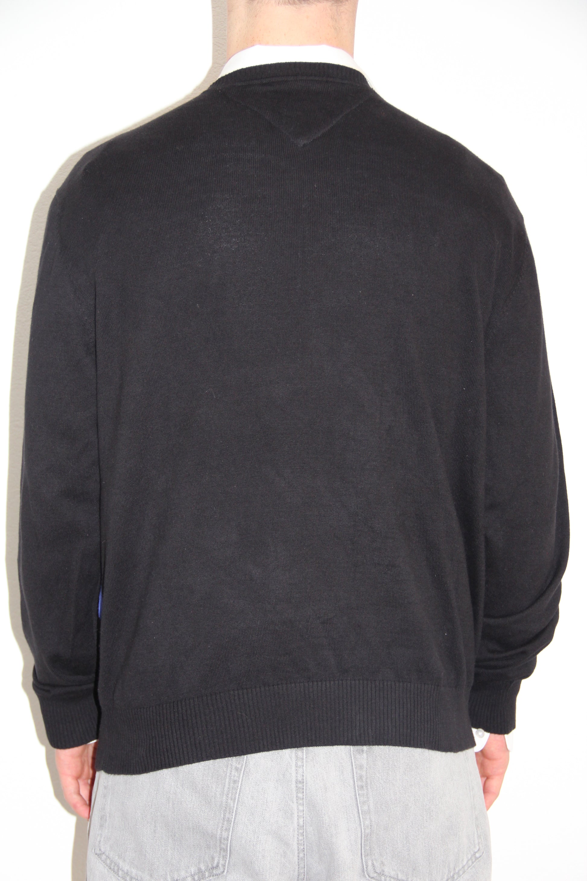 Der Pullover ist von der Marke Tommy Hilfiger, in Größe L/G, und aus Baumwolle, etc. gefertigt. Das Design besticht durch ein markantes Rauten-Muster in Blau, Grau und Schwarz.